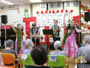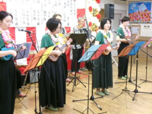 職員による出し物や、ハワイアンバンド等の演奏もあり、