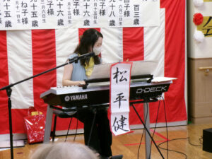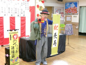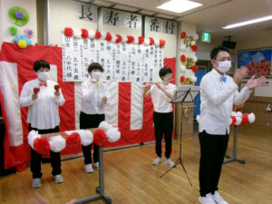 長寿を迎えられた利用者様へ賞状と記念品をお渡しと、